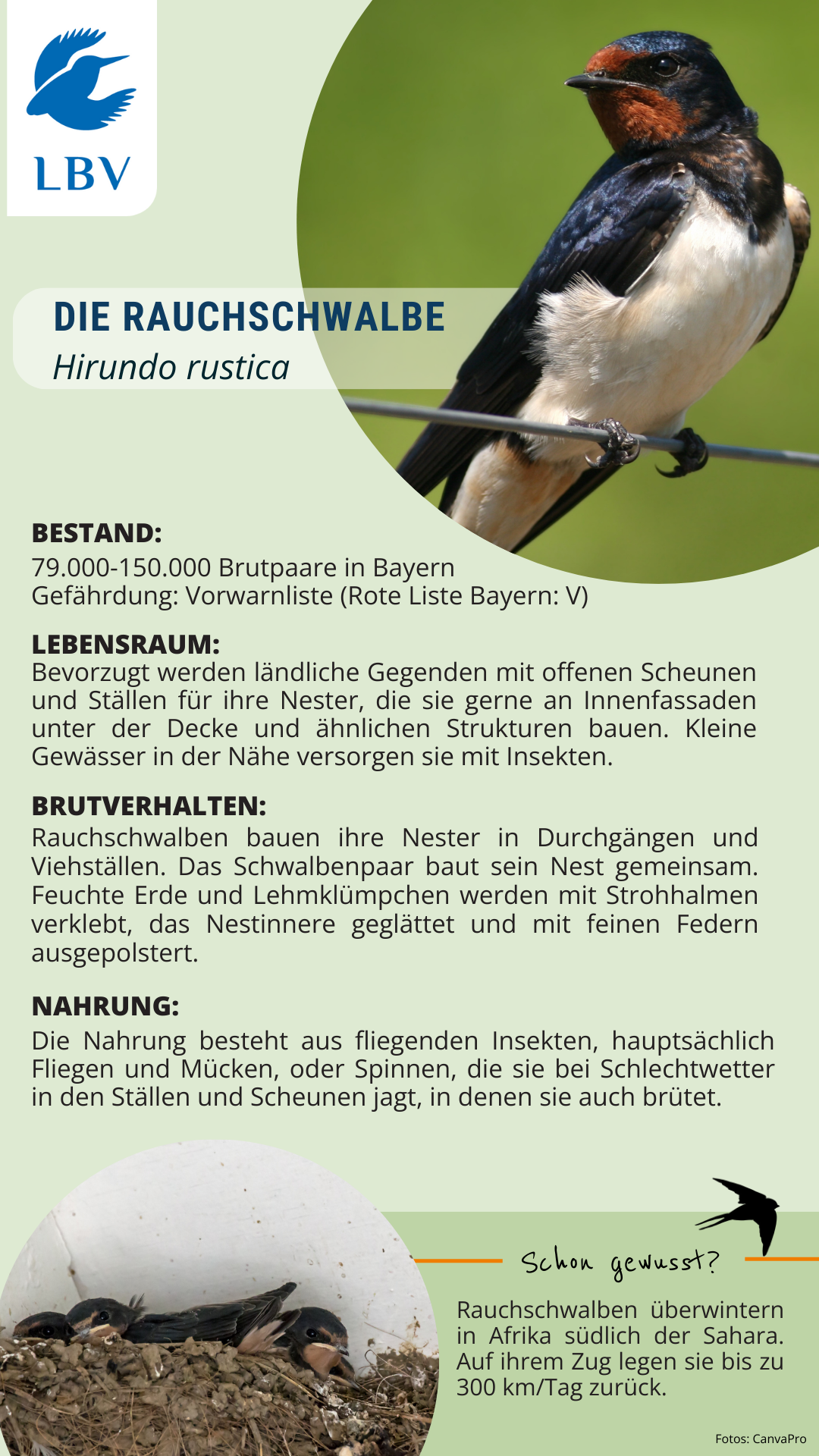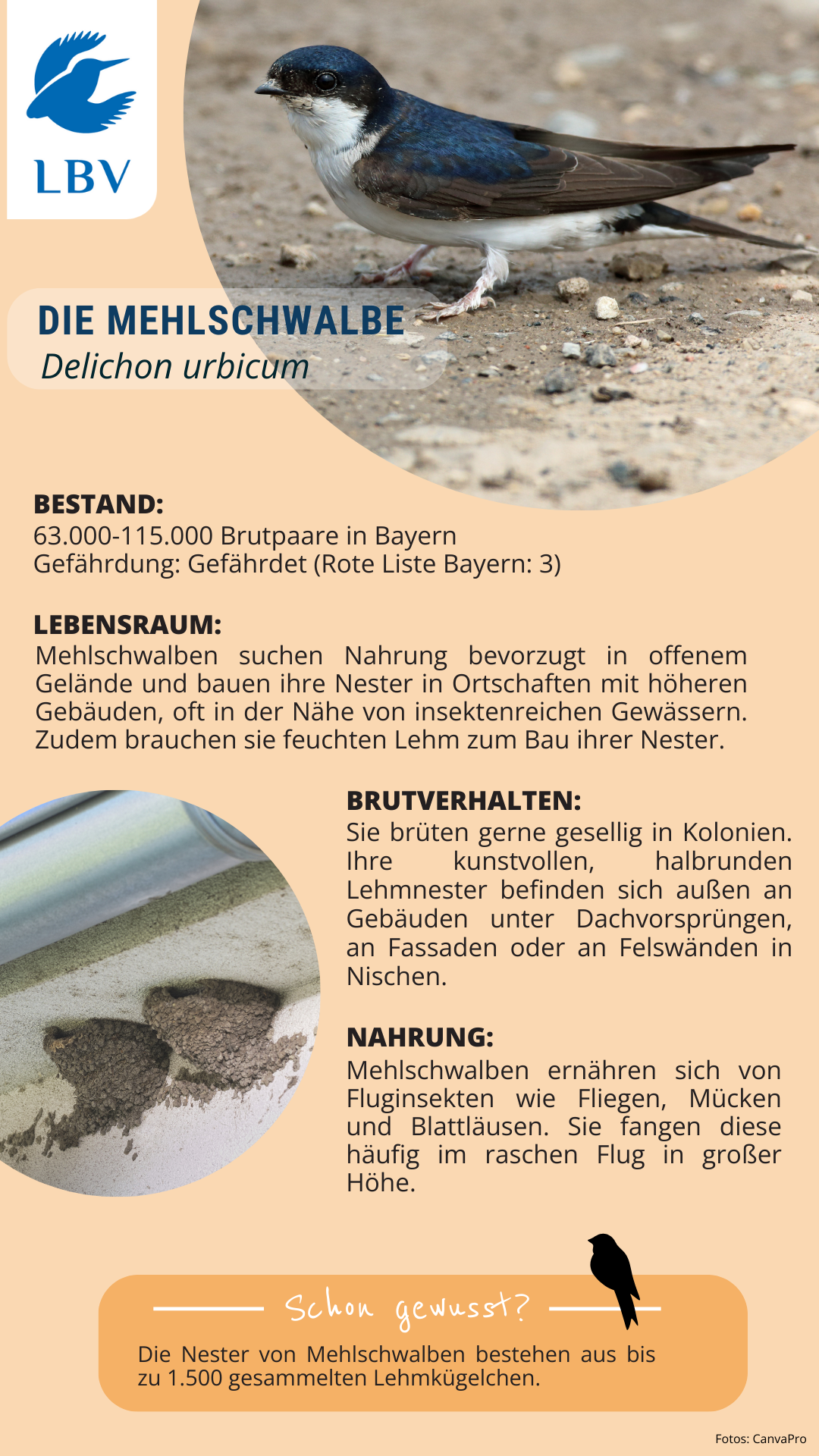 Habt ihr Nester bei euch am Haus oder kennt ihr gar Standorte, an denen Mehlschwalbe oder sogar Rauchschwalben brüten? Dann teilt uns das gerne mit! Entweder schreibt ihr uns eine Mail mit der Adresse der Niststandorte an schwalbenschutz.bamberg@lbv.de oder ihr meldet die Niststandorte direkt über die LBV eigene Plattform botschafter-spatz.de.