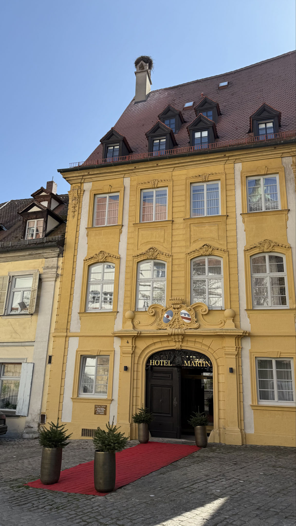 Die Adresse Vorderer Bach 4, der Alte Ebracher Hof, heute "Barockhotel am Dom", mit seiner schönen Barock-Fassade, scheint der künftigen Familie gut zu gefallen. Am 11. April angereist und die Wohnung bequem gemacht, scheint inzwischen schon eifrig das Brutgeschäft aufgenommen worden zu sein.