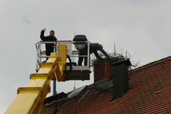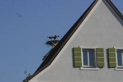 Umzug vom Frensdorfer Rathausdach ins neue Heim auf einem Wohnhaus - Bilder: Sherin Saborowski