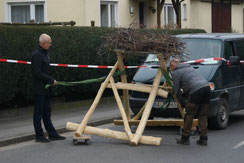 Anfang April 2020, spektakulär, mit Unterhaltungswert und Happy End, der Umzug des Frensdorfer "Glücksbringer-Paares", die bereits seit 18. Februar vor Ort waren, am vergangenen Wochenende. Das Nest auf dem Rathausdach, in welchem sich Familie Adebar bereits eifrig mit Aufbesserungsmaßnahmen ans Werk gemacht hatte, wurde zunächst entfernt, anschließend auf der neuen Nisthilfe befestigt und schließlich an den neuen Standort verbracht. Das neue Storchennest wurde auch sofort angenommen. Jetzt können die vom Ruß ergrauten Federn wieder weiß werden. Die Maßnahme wurde von Biologin Sherin Saborowski fachlich begleitet.