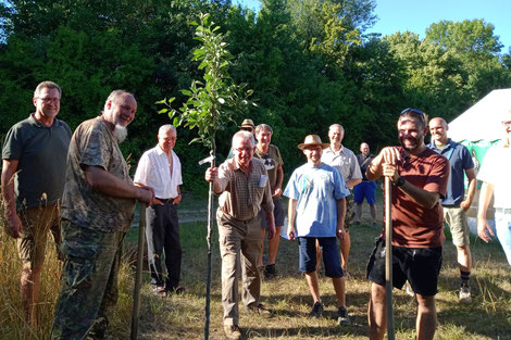 Um die Aufbruchsstimmung beim LBV Bamberg zu unterstreichen, wurde auf der Fuchsenwiese als Symbol des lebendigen Neuanfangs ein Apfelbaum gemeinsam gepflanzt. Die schweißtreibenden Vorarbeiten hierzu wurden von unserer Jugend geleistet.